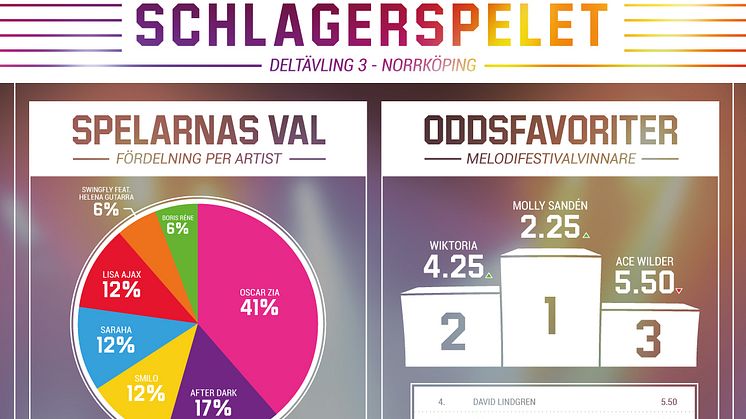 I morgon går Melodifestivalens tredje deltävling av stapeln i Norrköping. Och spelarna har redan sin favorit klar: Oscar Zia. 41 procent av alla spel på deltävlingen har lagts på honom och han spelas just nu till oddset 1.35 att gå vidare till finalen.