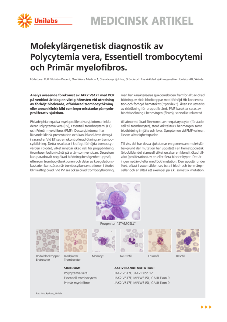 Molekylärgenetisk diagnostik av Polycytemia vera, Essentiell trombocytemi och Primär myelofibros