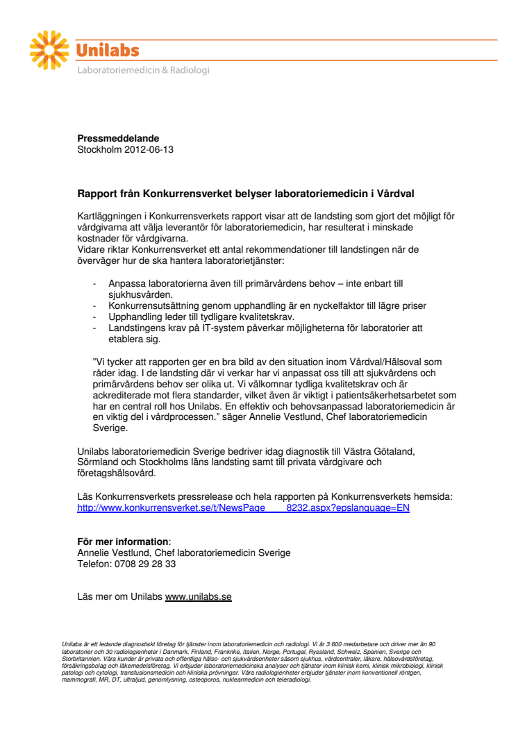 Rapport från Konkurrensverket belyser laboratoriemedicin i Vårdval