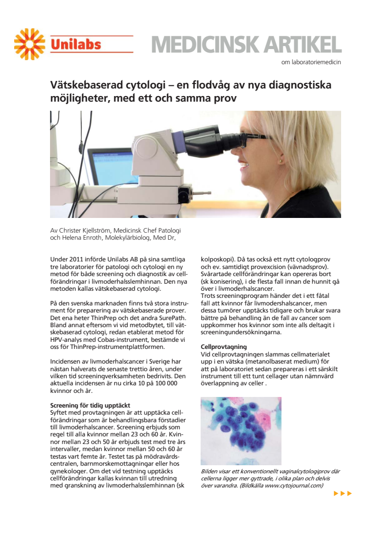 Vätskebaserad cytologi – en flodvåg av nya diagnostiska möjligheter, med ett och samma prov.