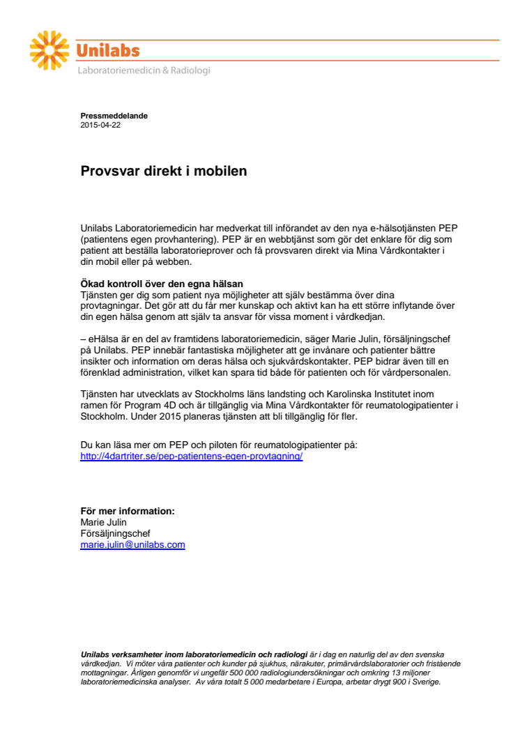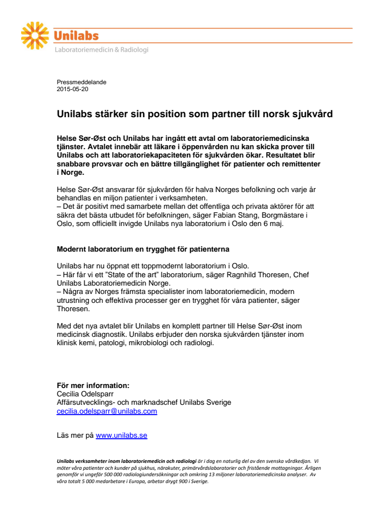 • Unilabs stärker sin position som partner till norsk sjukvård