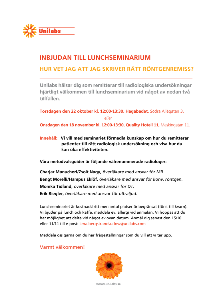 Välkommen till lunchseminarier 22 oktober och 18 november i Göteborg. Anmäl dig HÄR