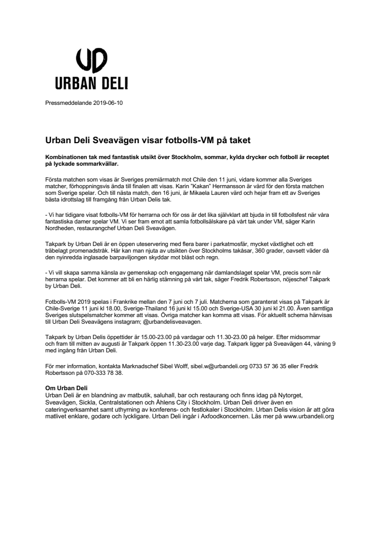 Urban Deli Sveavägen visar fotbolls-VM på taket