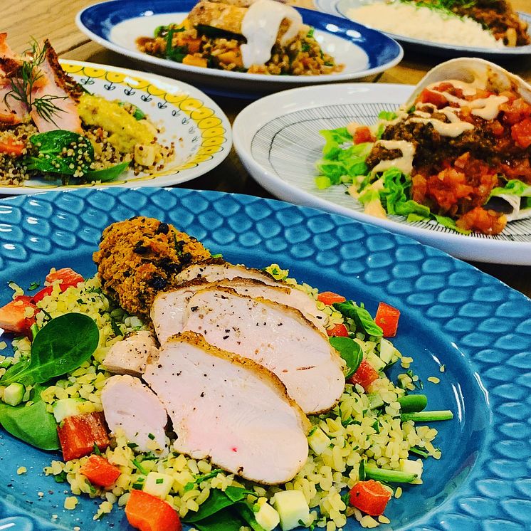 Sortimentet i webbutiken är vällagade färdiga maträtter, som går snabbt att göra klart med några snabba handgrepp. Det finns allt från helt färdiga portionsrätter till lite lyxigare, nästan färdiga måltider, samt skaldjur, chark, ost och kött från saluhallen. För den som vill komplettera sina inköp finns även exempelvis bröd, dryck, blommor, mjölk och toalettpapper nu i webbutikens utbud.