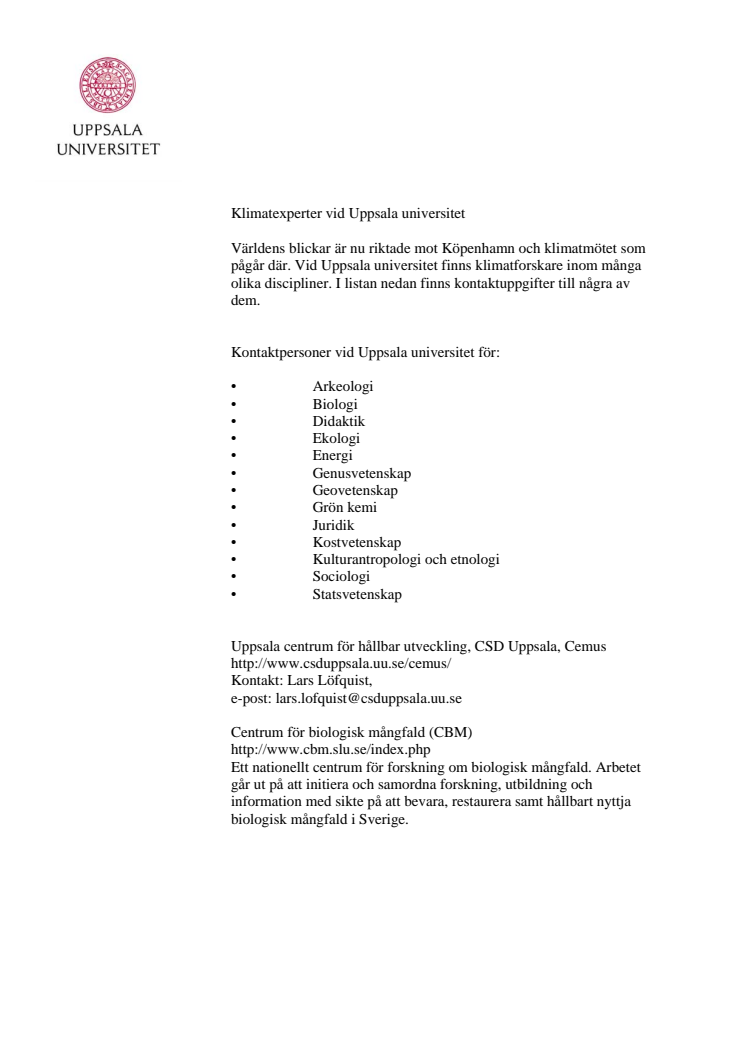 Tips på forskare inom klimatområdet vid Uppsala universitet.