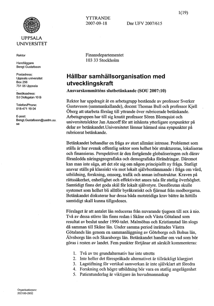 Uppsala universitets svar på Ansvarskommitténs betänkande.