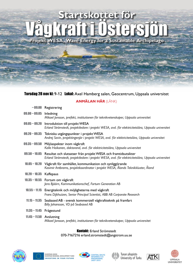 Agenda för vågkraftsseminariet vid Uppsala universitet den 28 november 2013