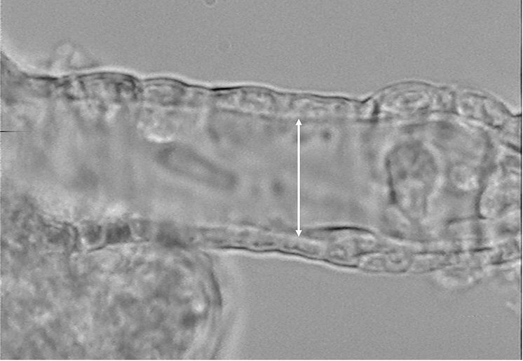 Ett mikroskopfoto av ett blodkärl i njuren hos en mus med diabetes.