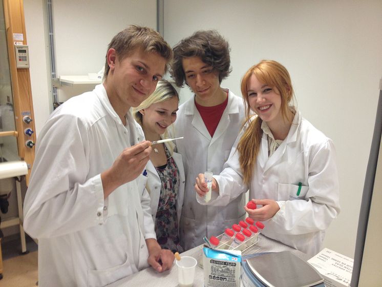 Laget iGem som tävlar i VM i syntetisk biologi 2013 i Cambridge, USA. Från vänster: Viktor Törnblom, Alona Nyberg, Ken Braesch-Andersen, Stephanie Herman