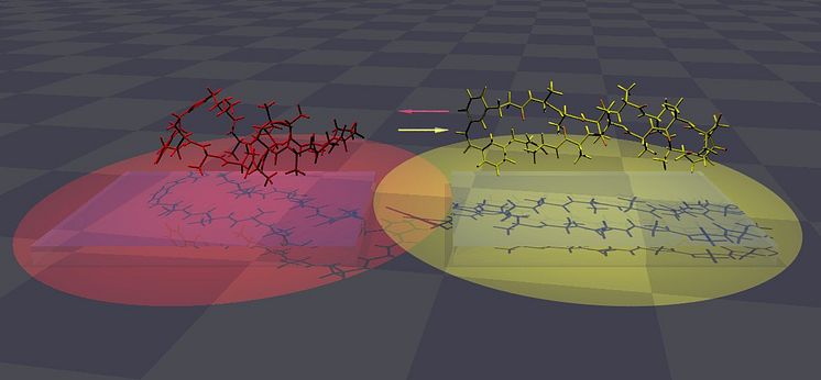 Schematisk bild av peptider som ändrar form av ljus med olika våglängder