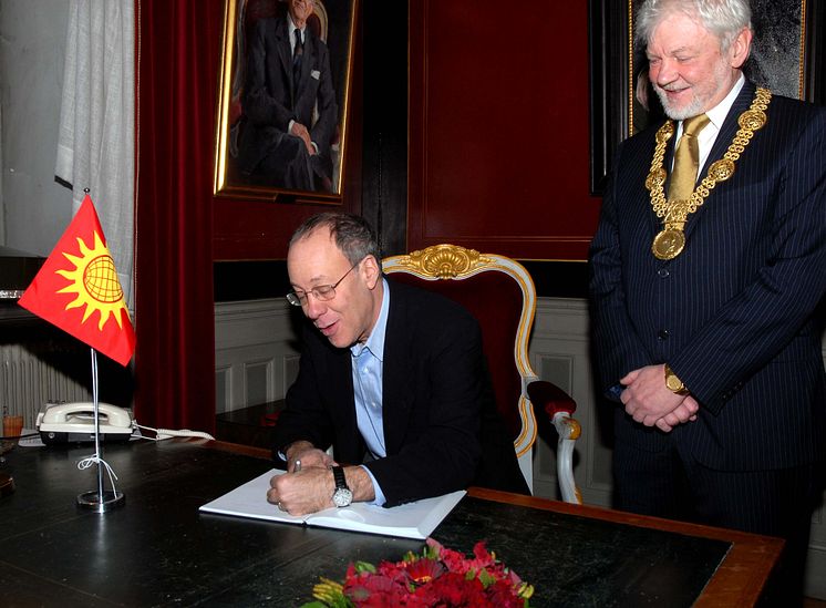 Professor Roger B. Myerson, Laureate for economic science in memory of Alfred Nobel, and Uppsala University Vice-Chancellor Anders Hallberg. Photographer: Teddy Törnlund.