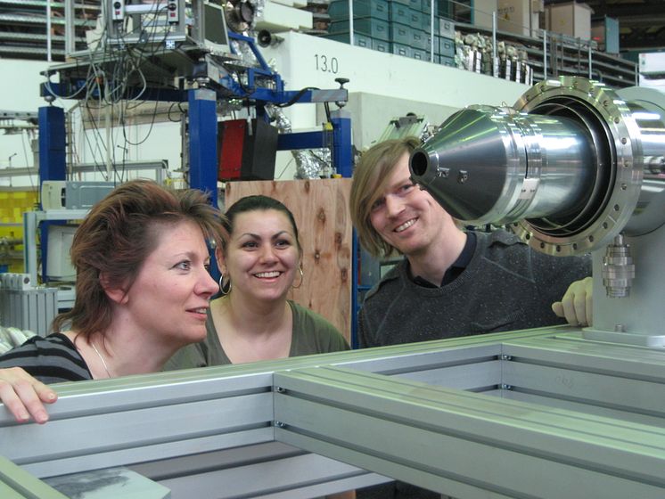 Dr. Antje Vollmer, Dr. Mihaela Gorgoi och Dr. Patrik Karlsson by the new instrument.