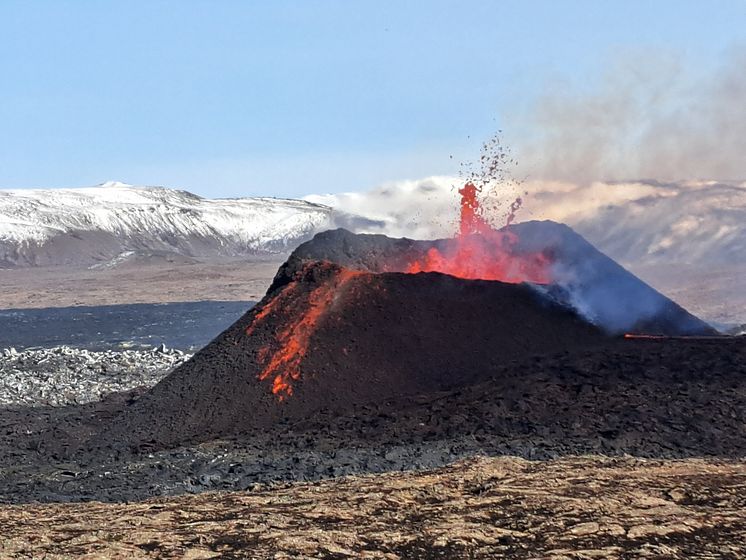 Vulkanen Sundhnukr får ett utbrott med eldfontäner och lavaflöden i april 2024.