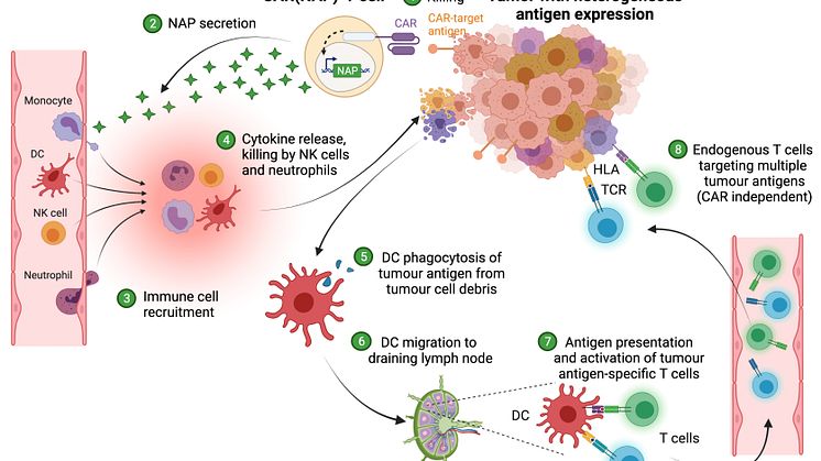För att komma runt detta problem har Uppsalaforskarna ”beväpnat” CAR-T-celler genom att sätta in en gen från bakterien Helicobacter pylori som ger upphov till det immunstimulerande proteinet NAP (neutrofilaktiverande protein). När NAP utsöndras från CAR-T-cellerna bildas en proinflammatorisk miljö som direkt bekämpar den immunhämmande mikromiljön i solida tumörer och stärker CAR-T-cellernas funktion.