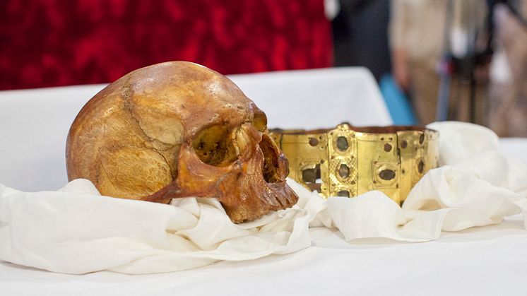 Projektledare Sabine Sten och skallen från Erik den heliges relikskrin
