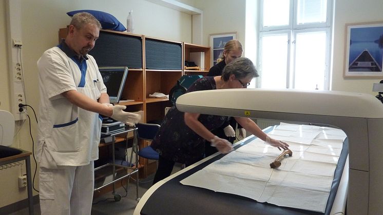 Projektledaren Sabine Sten vid datortomografiundersökningen, Akademiska sjukhuset
