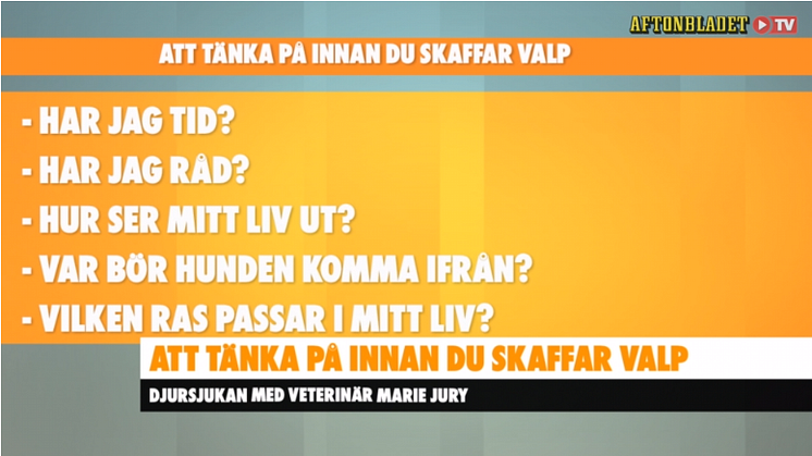 I klippet i från Aftonbladet ser ni även veterinär Marie Jury från Väsby Djursjukhus gå igenom några av det viktigaste punkterna vid ett valpköp.