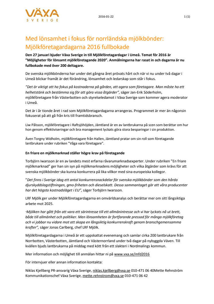Med lönsamhet i fokus för norrländska mjölkproducenter: Mjölkföretagardagarna 2016 fullbokade