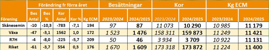 Årskörningen i Kokontrollen® är klar och visar en medelavkastning om 10 747 kg mjölk eller 11 400 kg ECM (energikorrigerad mjölk, d v s hänsyn tagen till innehåll av fett och protein). Högst avkastning finns återigen inom Växas område med 11 421 kg ECM. Jämfört med föregående år är avkastningsökningen störst hos besättningar i Skånesemins mjölkkontroll.