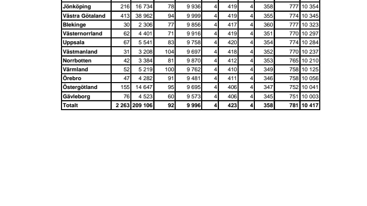 För första gången ligger medelavkastningen per län i Sverige över 10 000 kg ECM. Vissa län har stora ökningar där bland annat Västerbotten utmärker sig med en ökning på hela 431 kg. Det gör att Västerbotten ligger på andra plats i Sverige med 10 663 kg ECM. Högst i medelavkastning ligger Halland, med 10 715 kg ECM men flera län har en avkastning som närmar sig dessa nivåer.