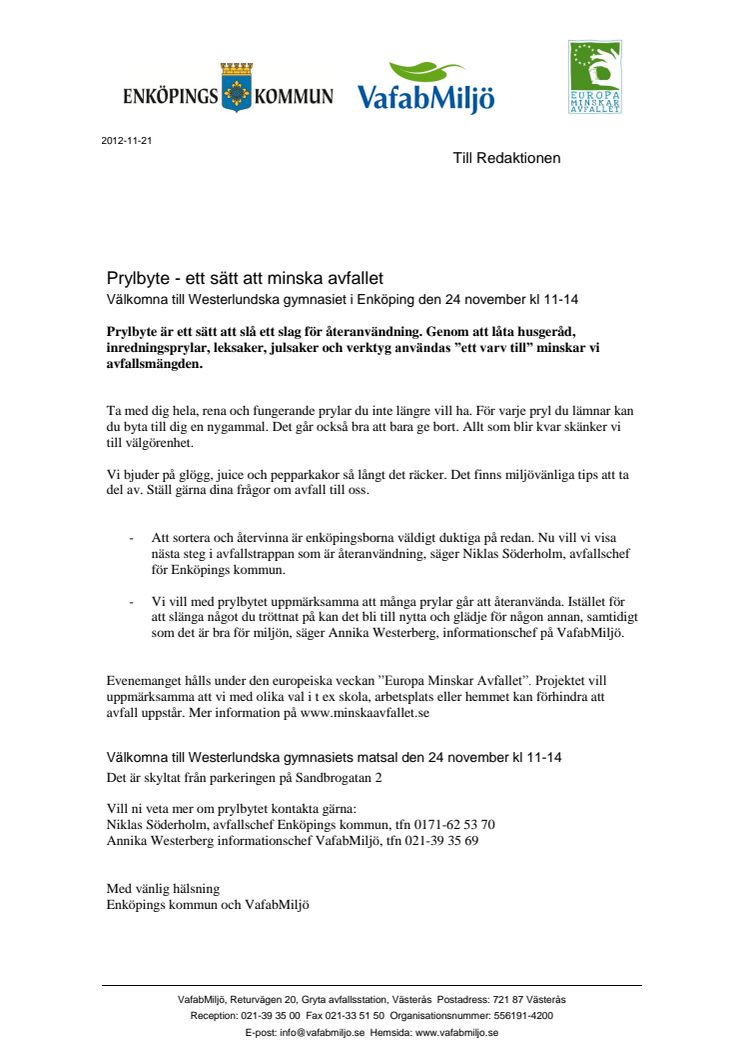 Prylbyte i Enköping - ett sätt att minska avfallet