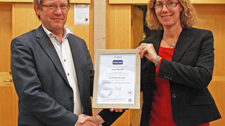 Nu har VafabMiljö blivit kvalitetscertifierade och fått certifikat enligt ISO 9001. Arbetet med kvalitetsarbetet har pågått en tid då VafabMiljö bland annat jobbat med processkartläggningar inom sina olika verksamheter. Genom att ha ledningssystem får vi verktyg att leda, styra och ständigt förbättra verksamheten.