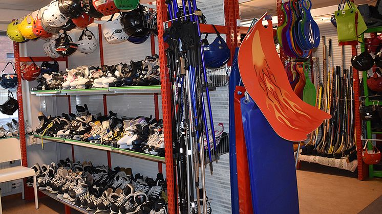 Fritidsbanken på Ålidhem i Umeå lånar ut sport- och fritidsutrustning gratis. Nu inleder de ett samarbete med Vakin, där besökare vid Gimonäs och Klockarbäckens återvinningscentraler kan skänka utrustning de inte längre behöver till Fritidsbanken.