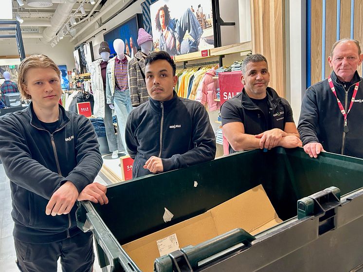 Gänget på Ragn-Sells som sköter Välas avfallshantering, fr v: Simon J. Lundberg, Saber Nazari, Kamal Bikazzan och Bertil Persson.