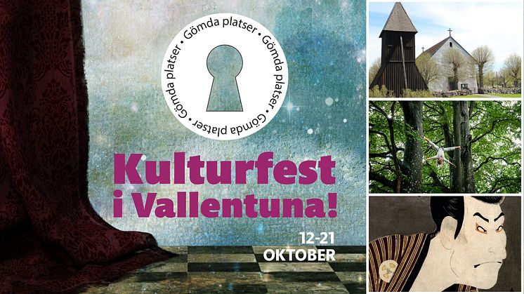 Välkommen till Gömda platser - en kulturfest i Vallentuna! Mellan den 12-21 oktober har du chansen att upptäcka Vallentuna på nytt genom ett extra fullspäckat schema av kultur, konst, evenemang och upplevelser. Kulturveckan bjuder bland annat på konserter, fotoutställningar, barnteater, föredrag och en ljuspromenad med inslag av väsen och nycirkus med interaktiva äventyr!