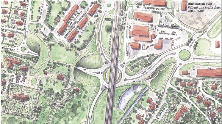 Trafikplatsen kommer att bestå av en rondell som är överbyggd av dubbla järnvägsspår. Det blir en planskild korsning som både förbättrar trafiksäkerheten och medger tätare turer för tågen. För bilister, cyklister och fotgängare blir det lätt och smidigt att ta sig under järnvägen, och in till Vallentuna centrum.