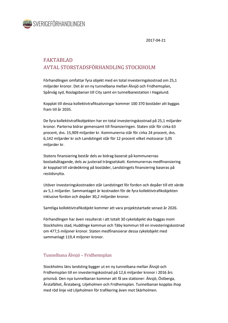 - Roslagsbanans förlängning till city är en oerhört viktig investering som ökar tillgängligheten till och från Vallentuna. Med den nya spårdragningen blir många människors vardag mycket enklare. Vi får närmare till allt. Nu har vi ett avtal på plats som innebär att finansieringen är klar, säger Parisa Liljestrand, kommunstyrelsens ordförande i Vallentuna kommun.