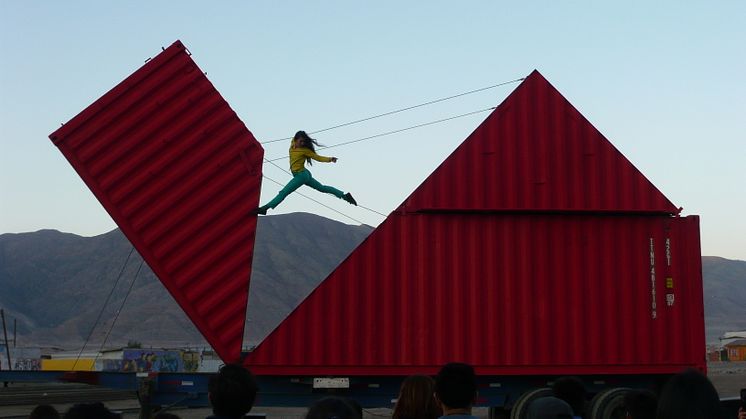 Spektakulär akrobatik på container till Vara Konserthus