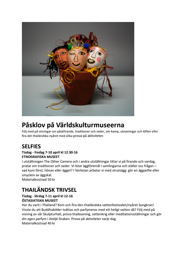 Påsklov: Äggselfies, thailändskt nyår & gladiatorer