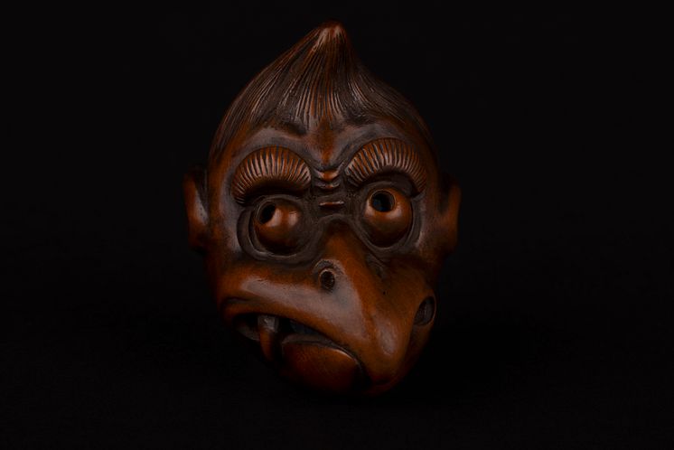 Netsuke föreställande en tengu. Signerad: Hiei. 1800-tal. Föremål ur världskulturmuseernas samlingar.