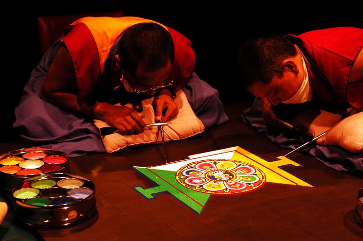 Tibetanska buddhistmunkar besöker Östasiatiska museet och skapar en klassisk sandmandala. Detta sker när Skulpturhallen öppnar på nytt.