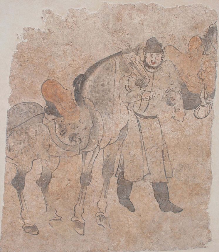 Gravmural av en man och en häst. Tangdynastin (690-710)