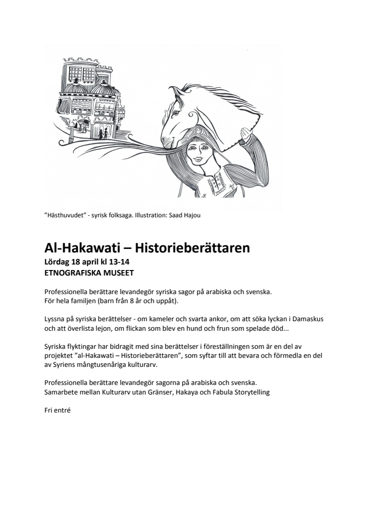 Bildtext: ”Hästhuvudet” - syrisk folksaga. Illustration: Saad Hajou