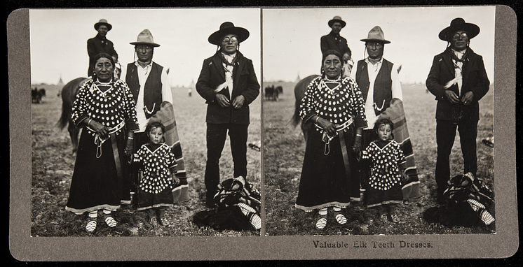 Ett viktigt statusplagg från tidigt 1900-tal finns i föremålssamlingen vid Världskulturmuseet. Det är en hjorttandsklänning från folket apsáalooke, smyckad med tänder från ett stort antal fällda vapiti-hjortar. Angela Howe-Parrish (apsáalooke/pikuni) är en av flera modedesigners som använder tryckta mönster med hjorttänder i sina kollektioner. I sin designpraktik vill hon inspirera dagens unga att föra traditionerna vidare.