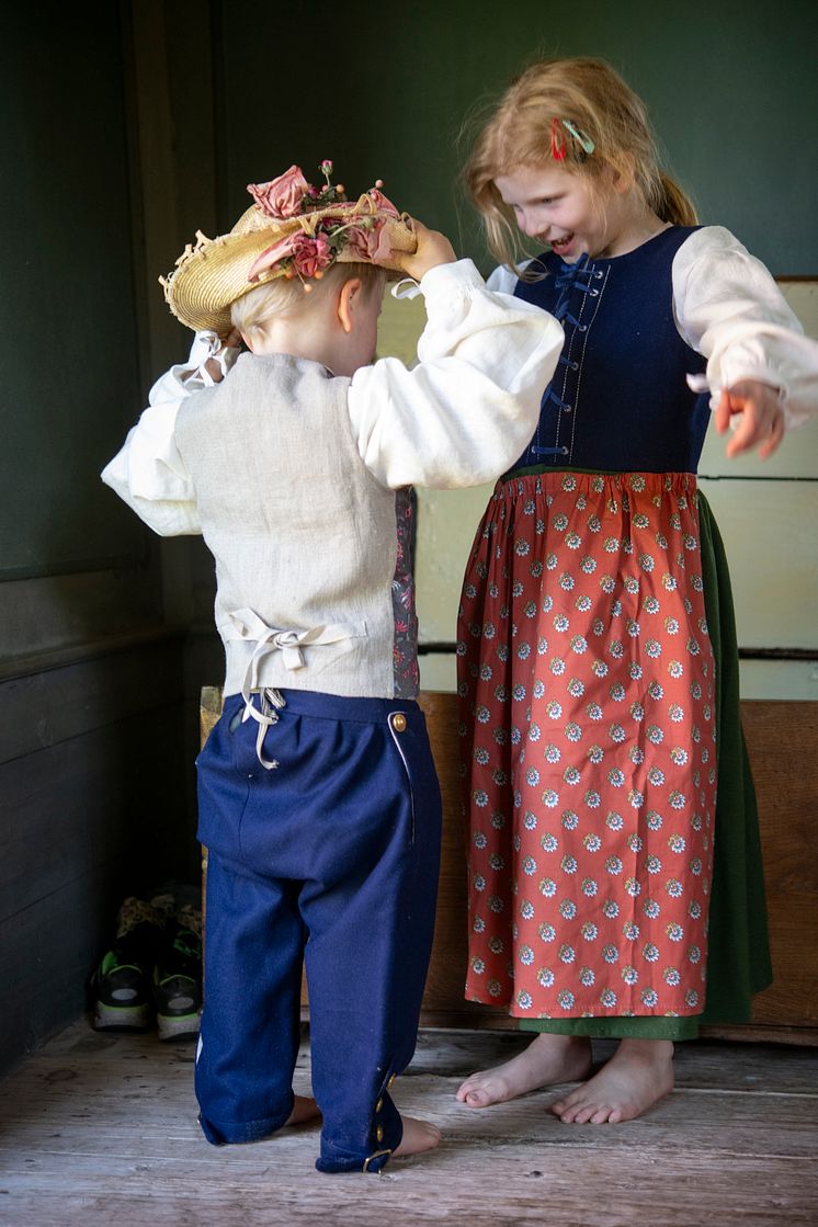 På von Echstedska gården finns en dräktkammare där barn kan prova 1700-talskläder.