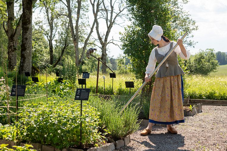 Solen sken när von Echstedska gården slog upp portarna den 26 maj. I uthuset i närheten av kaffehuset finns en ny dräktkammare där barn kan klä upp sig i handsydda 1700-talskläder.