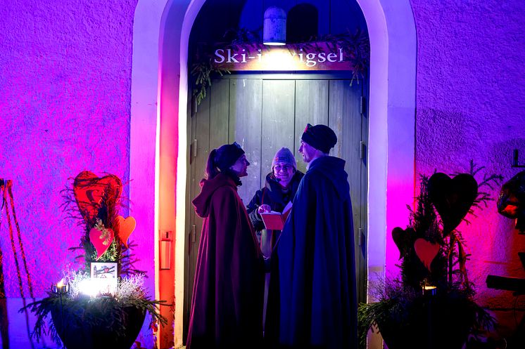 Skid-vigsel: 9 par gifte sig i Mora kyrkas ski in-vigsel efter målgång under vinterveckan – och en välsignelse hade kyrkan också! Totalt har nu över100 par gift sig efter målgång!