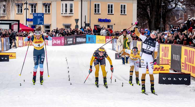 Efter en spurtuppgörelse med tre andra åkare tog Kati Roivas, Team Eksjöhus, hem segern i Tjejvasan 2024.