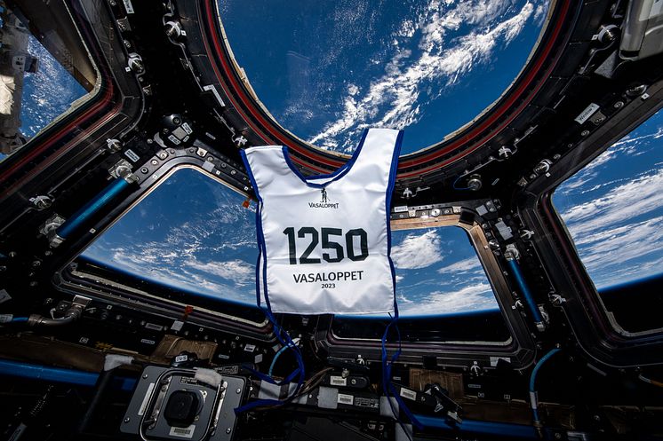 Vasaloppsnummerlappen som den svenske astronauten Marcus Wandt hade med sig till rymdstationen ISS i början av 2024. I augusti under Vasaloppets sommarvecka 2024 ska den återlämnas till Vasaloppet.