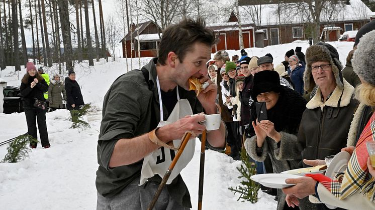 Jubileumsvasan nr 31 Tore Stengrundet trea i mål äter pannkakor