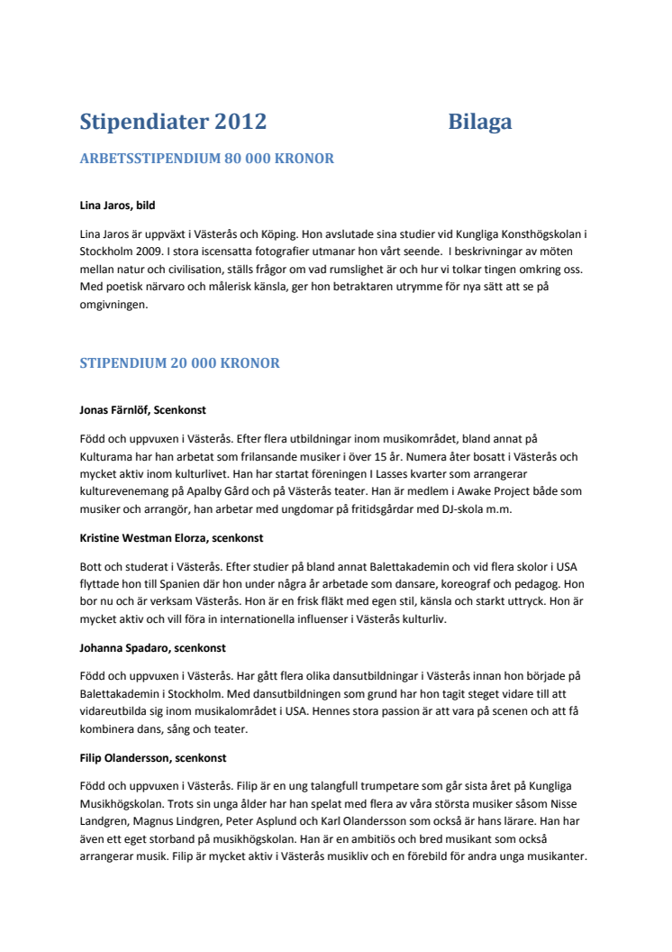 Kultur- och föreningsledarstipendiater 2012