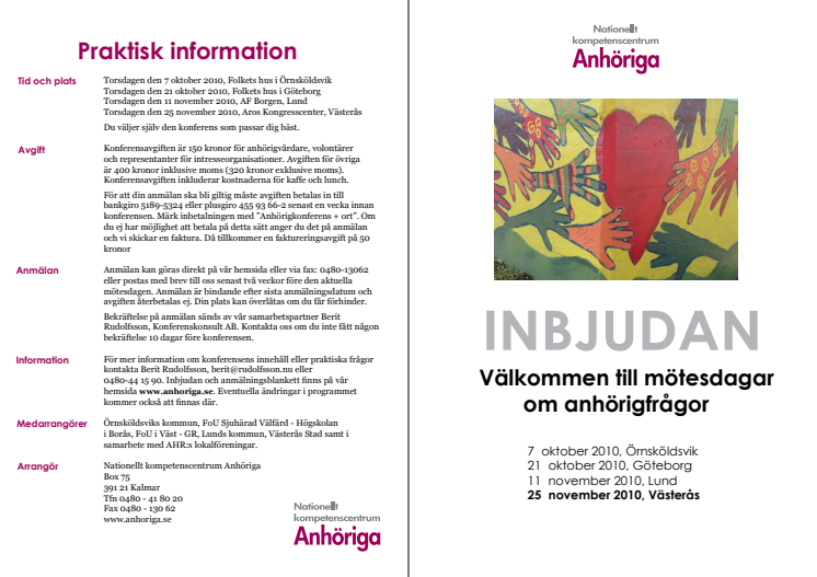 Den 25 november är det mötesdag om anhörigfrågor på Aros Congress Center i Västerås.