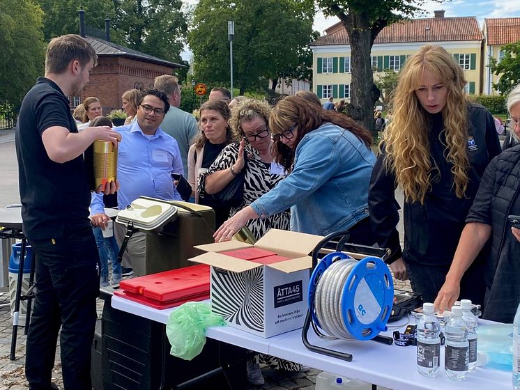 Medarbetare från Västerås stad visar upp beredskapsutrustning