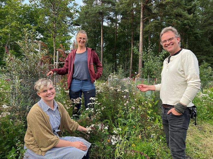 Landskapsarkitekt Petra Löfgren, skogsvaktare Jörgen Gustafsson och landskapsingenjör Sara Ellström arbetar alla med Malmaberg matskog.