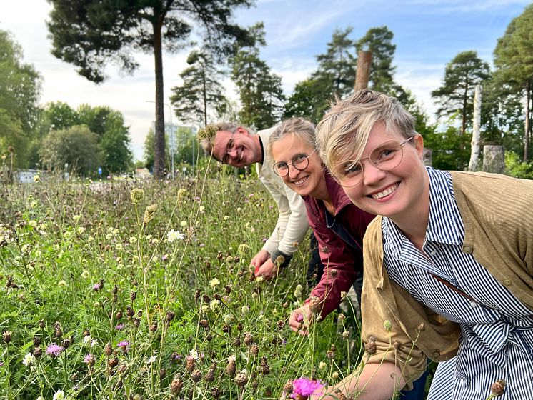 Jörgen Gustafsson skogsvaktare, Sara Ellström landskapsingenjör och Petra Löfgren landskapsarkitekt arbetar med Malmaberg matskog.