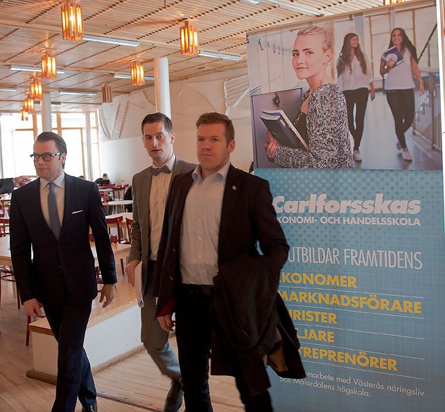 Prins Daniel vid besöket på Carlforsskas Ekonomi- och Handelsskola